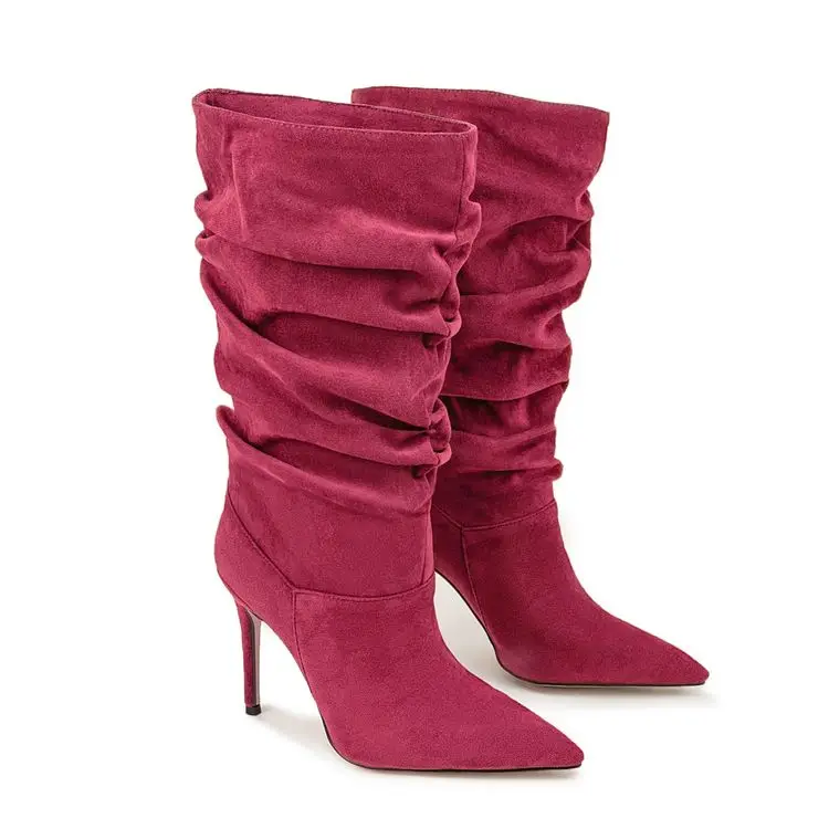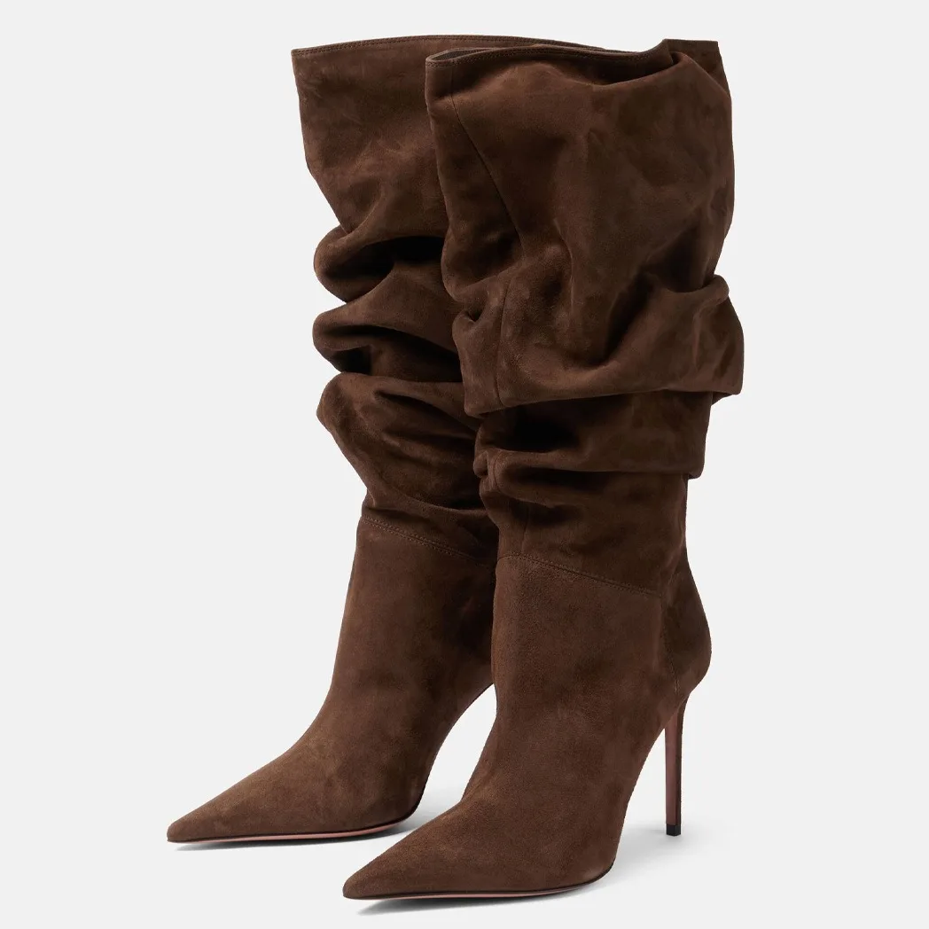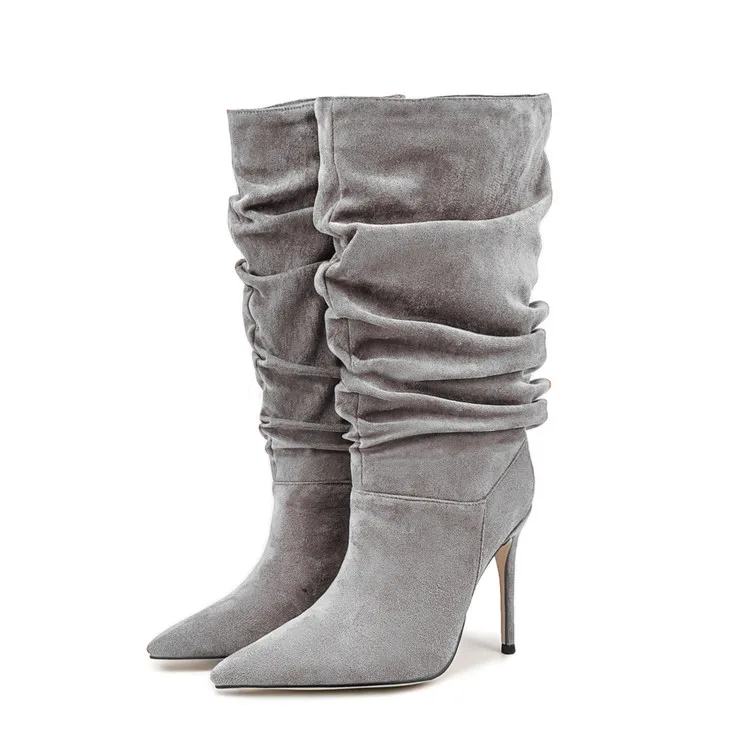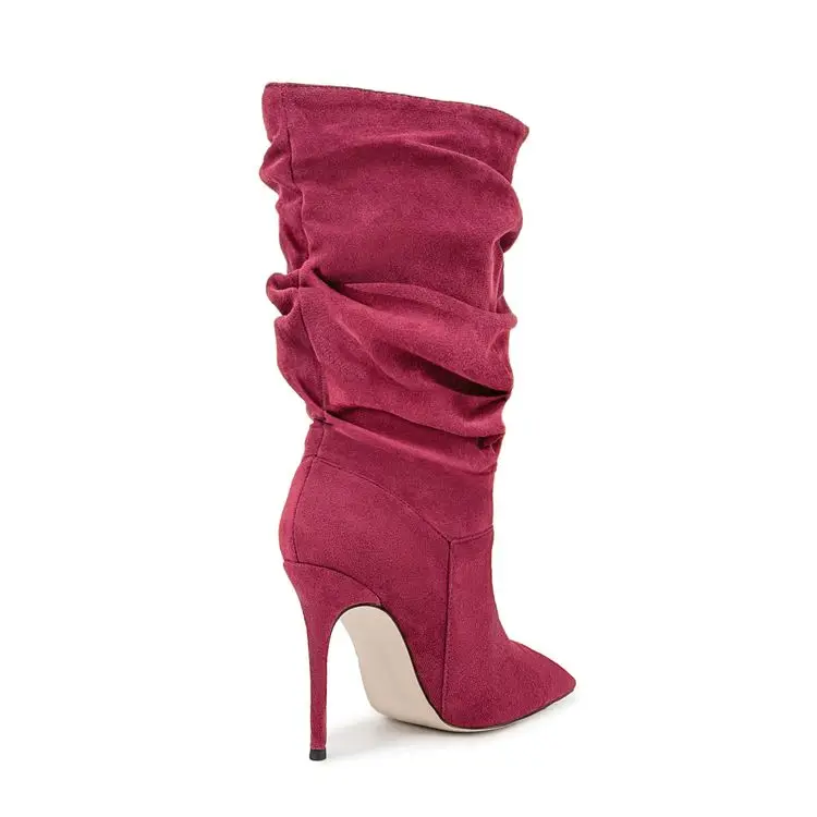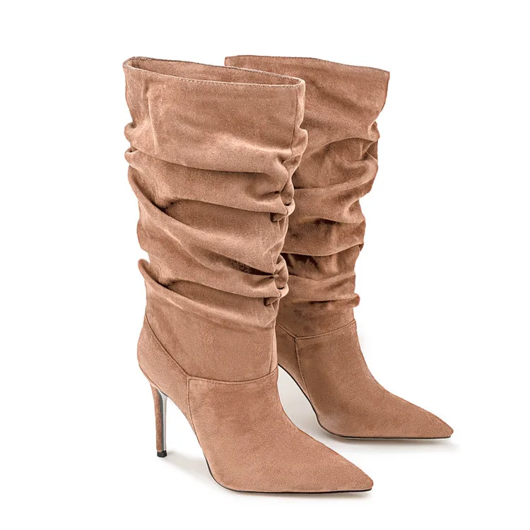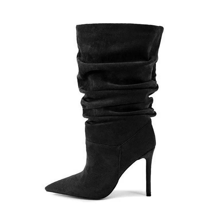 Pleated High-heeled Short Boots