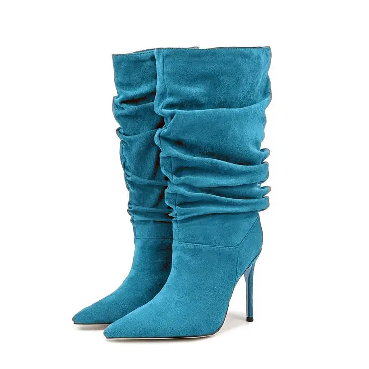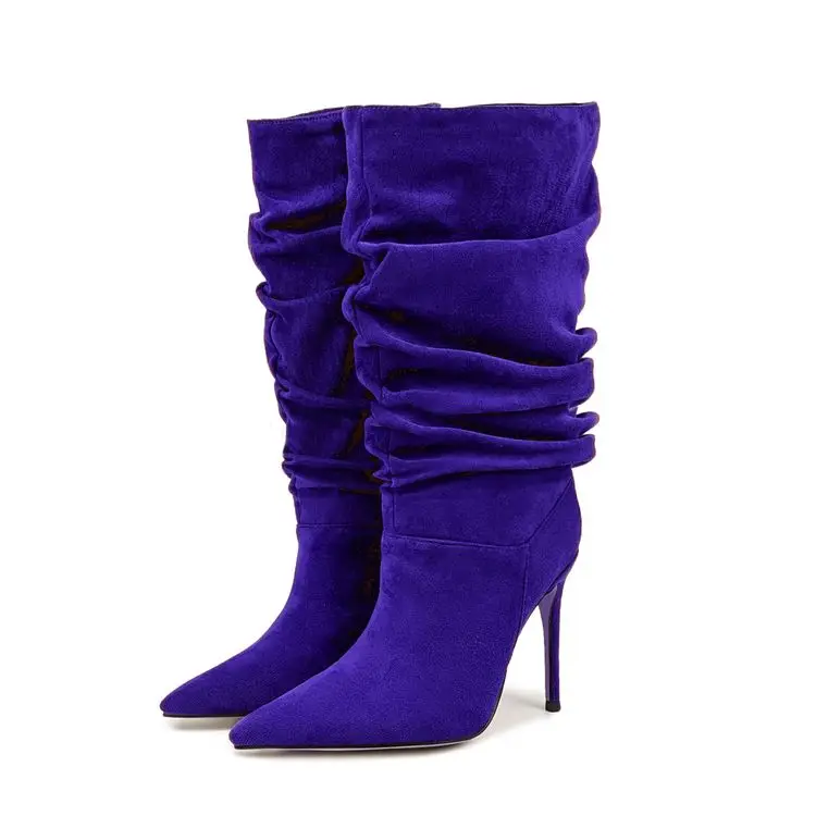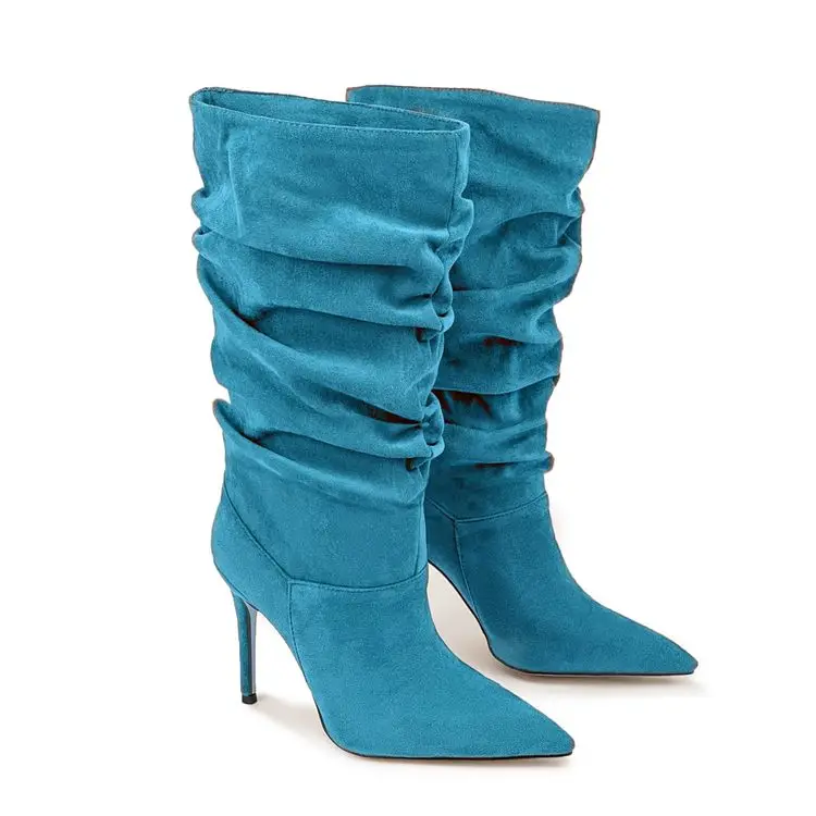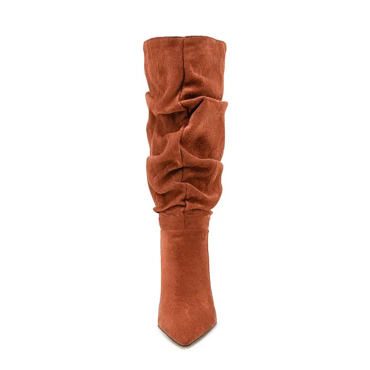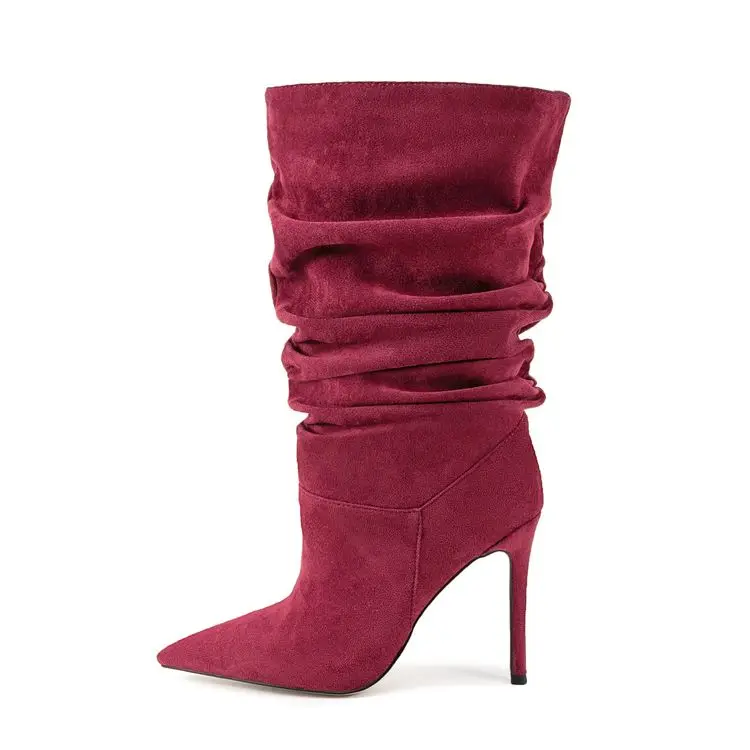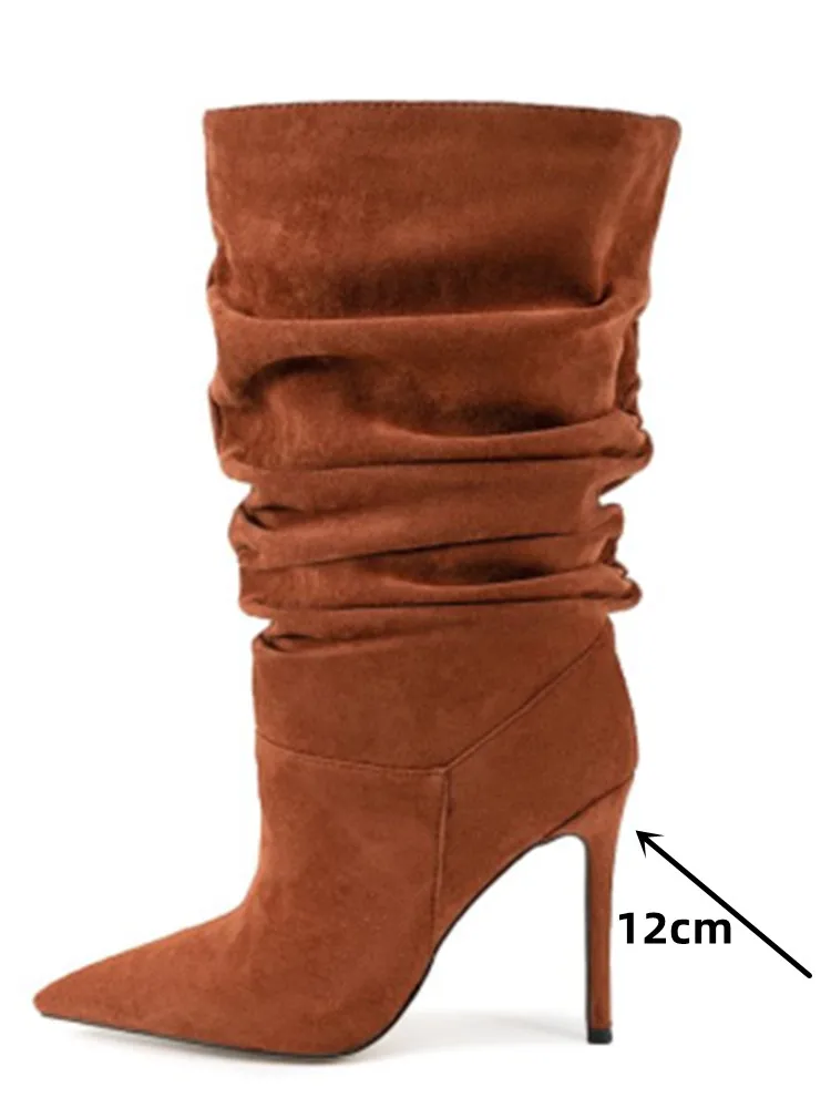 Pleated High-heeled Short Boots