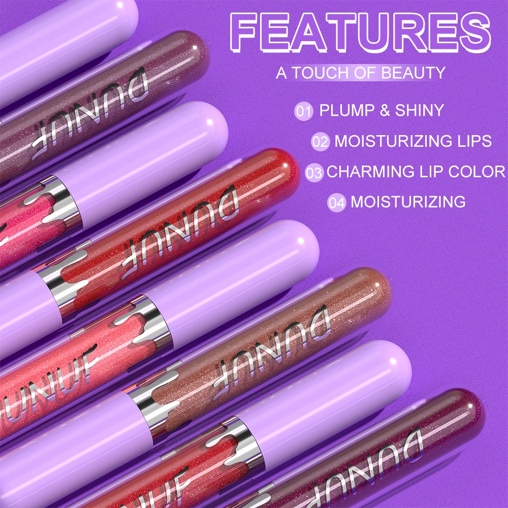 DUNUF 5 Sets Pearl Lip Gloss Moisturizing Lip Gloss Easy Color Lipstick