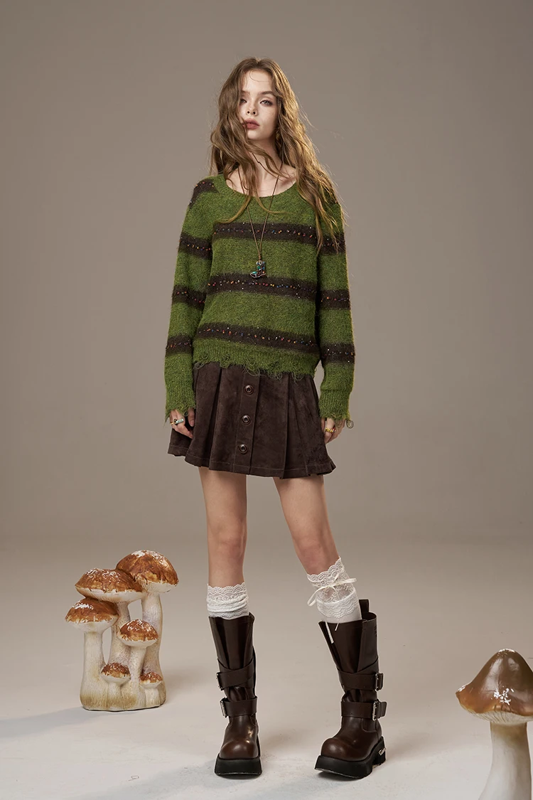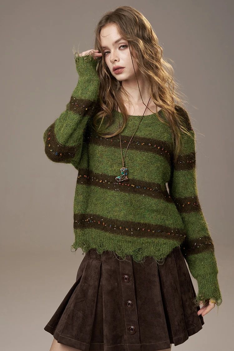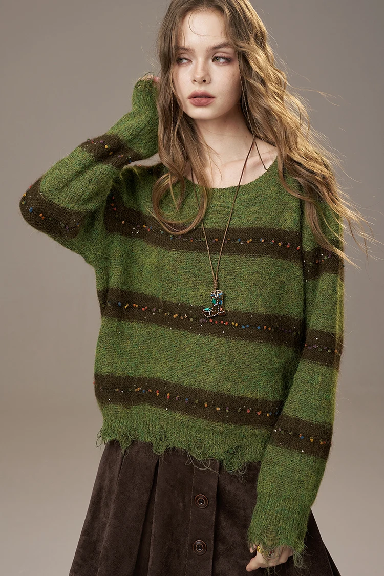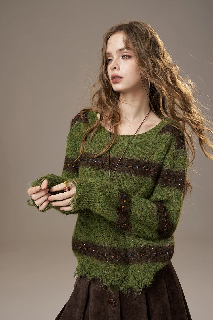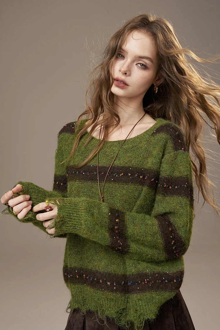 2025 Autumn New Arrivals Cute Casual Knit Color Accent V Neck Loose Cardigan Sweater For Woman