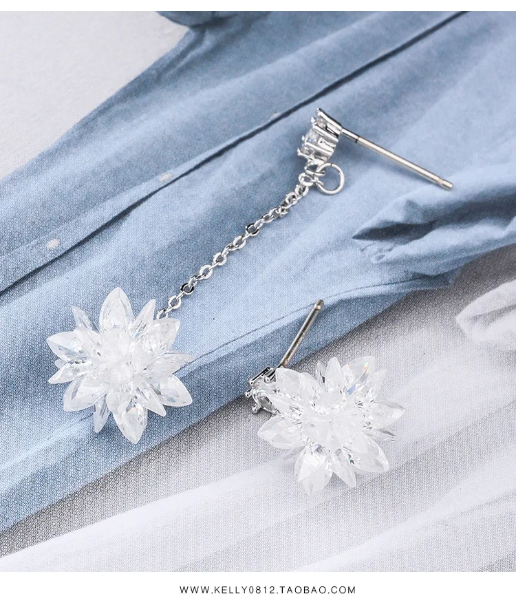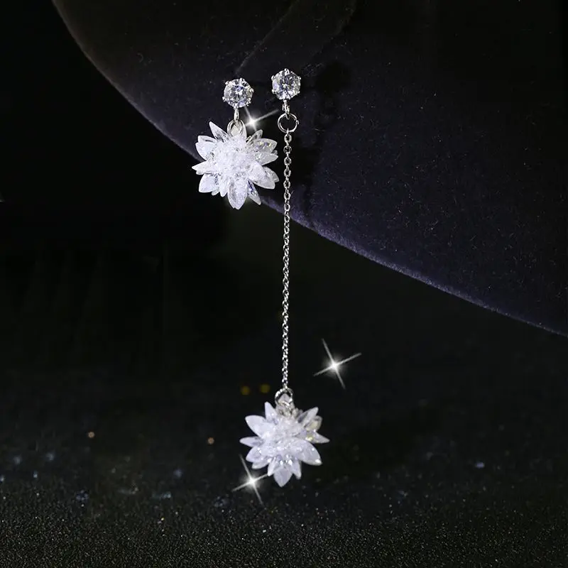 925 Sterling Silver Zircon Long Tassel Pearl Drop Earrings