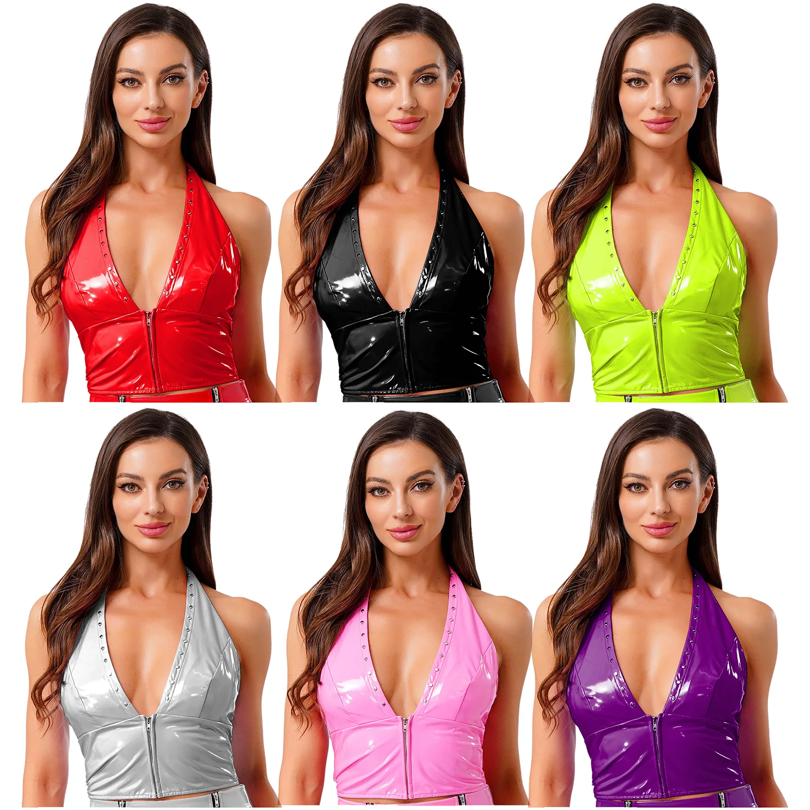 Model Number: Women Glossy Patent Leather Crop Tops Vest